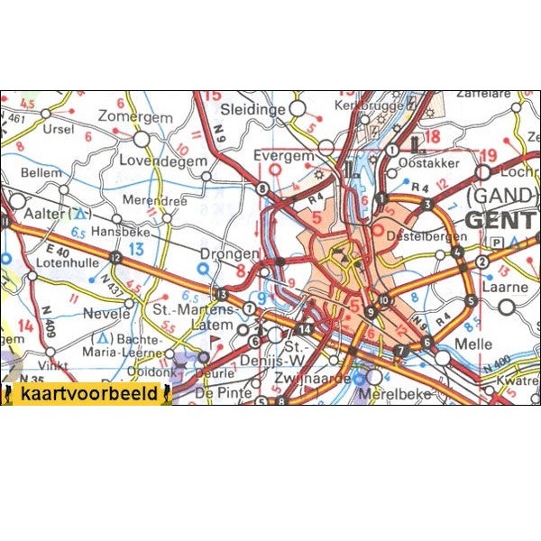 een kaart die uitstekend voldoet als begeleidingskaart voor alle lange afstand fietsroutes die door deze landen Belgie lopen.