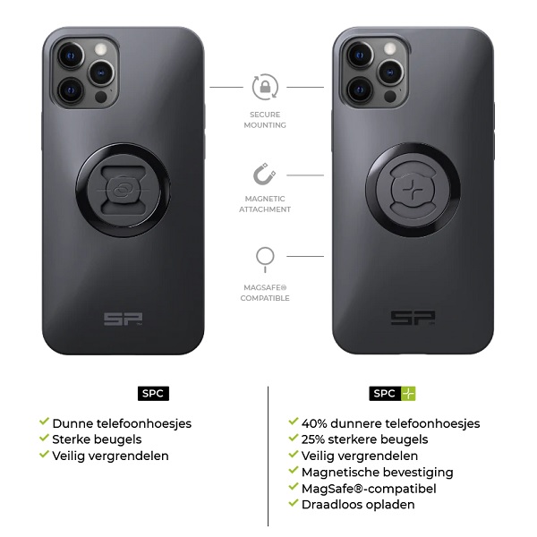 Heeft u al een SP Connect telefoonhouder in uw bezit van vóór 2023? Dan is dit een SPC bevestiging. Er zijn adapters beschikbaar zodat u deze hoes ook met uw bestaande systeem kan combineren.