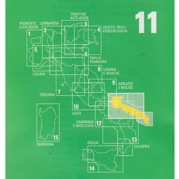 Onze aanbevolen kaartserie voor Italië. De kaarten van Touring Club Italiano, met een schaal van 1:200.000, zijn het meest betrouwbaar en hebben het prettigste kaartbeeld. Uitstekend geschikt om zelf fietstochten mee uit te zetten of als begeleidende kaart van bestaande routes. Alle verharde wegen en deels ook de onverharde zijn aanwezig.
